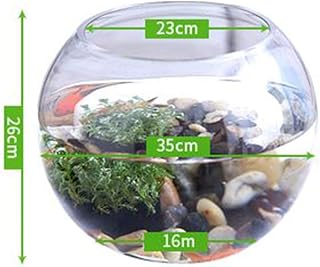 透明な小さな金魚タンクガラス水槽を見る丸い大型コンテナミニクリエイティブシェイプ水草が付いている家の装飾,35cm