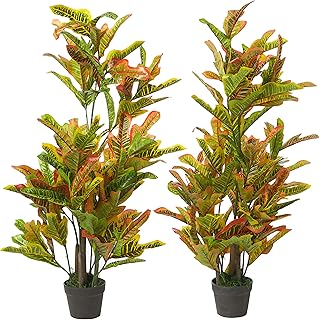 AMERIQUE ペア ゴージャスな4フィート トロピカルコディアームツリー 人工シルク植物 保育園プラスチックポット付き UV保護 リアルテクノロジー 4フィート イエローとグリーン 2