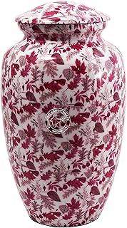 Hind Handicrafts アルミニウム 火葬 骨壷 大人用 – 手作りの葬儀 遺灰保管用骨つぼ – お手頃な骨つぼ – バッグ付属 (L – 200立方インチまたはポンド 紅葉3)