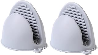 鍋つかみ シリコン ミトン 耐熱なべつかみ 両手セット グリップ 滑り止め 防水 耐熱 耐冷 左右兼用 収納便利 (グレー)