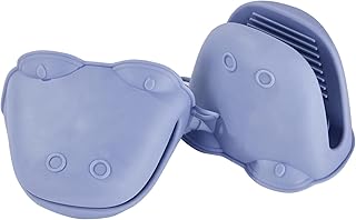 鍋つかみ 耐熱ミトン シリコン 防水 滑り止め おしゃれ かわいい なべつかみ クッキング用 左右兼用 手袋 (2個セット) (ブルー)