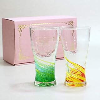 ペアグラス おしゃれ プレゼント ビールグラス ビアグラス オシャレ ギフト ビアジョッキ ビールジョッキ 琉球ガラス グラス 涼夏一口ビアグラス 2個 ペアセット ギフトBOX付 青×金赤