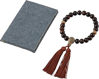 岸田産業 念珠 念珠袋 セット 男性用 ブラック 日本製 数珠 縞黒檀 京念珠 401-502