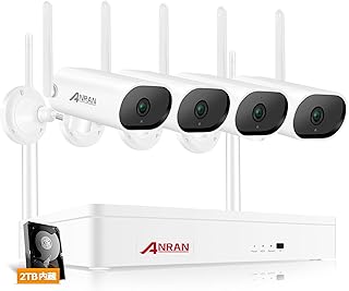 【500万画素・双方向音声】防犯カメラ ワイヤレス 屋外 180°パンカメラ 2TBHDD内蔵 8台まで増設可 操作簡単 初期設定不要 遠隔監視 双方向通話対応 防水等級IP66 1920P 監視カメラ wifi AI動体検知 暗視撮影 常時録画 防犯カメラ 屋内 家庭用防犯カメラ ANRAN セキュリティカメラ H.265+圧縮技術 ネットワークカメラ 技適とPSE認証取得 4台防犯カメラセット